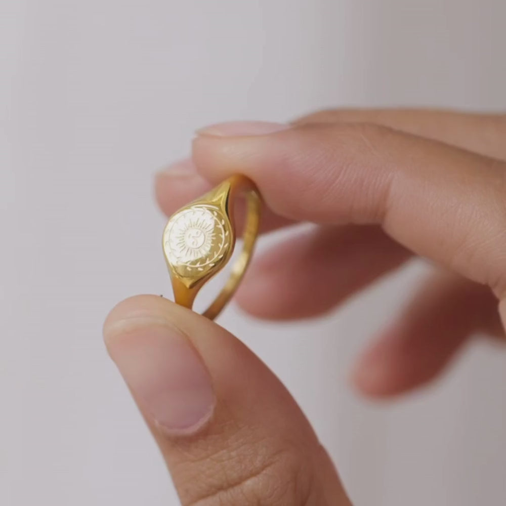 Dieser schicke Ring wurde von der Sonnenwende inspiriert – dem Tag, an dem die Sonne scheinbar stillsteht. Die Sonnenwende symbolisiert Neuanfänge, Wiedergeburt und die Entdeckung unseres wahren Selbst.