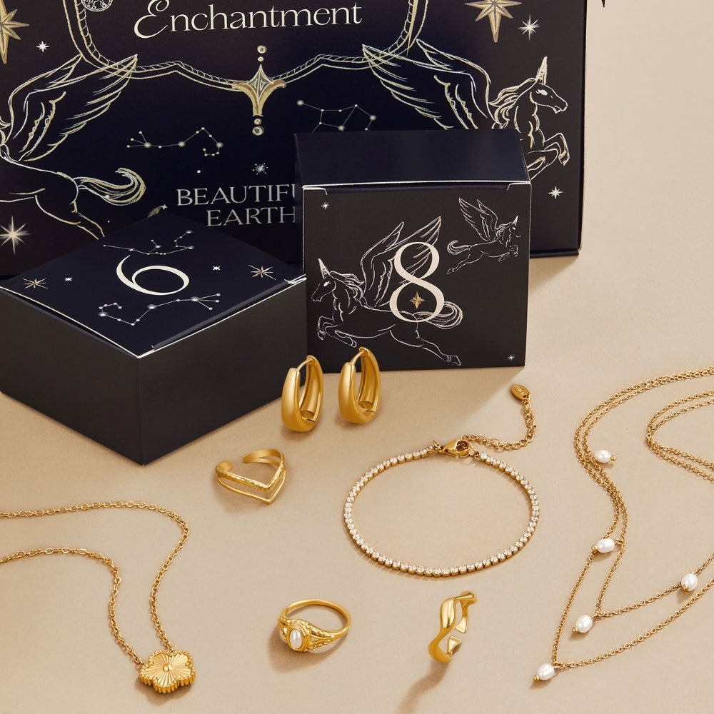 Waterproof & tarnish-free jewellery, limited edition packaging, and free shipping for all orders.